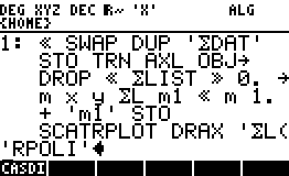» Aplica el comando TRN (transpuesta) a la matríz de datos (intercambia filas por columnas) y utiliza el comando AXL para convertirla en una Lista de Listas (matríz lista). Los comandos OBJ y DROP descomponen la lista en sus elementos (en dos listas X e Y). |