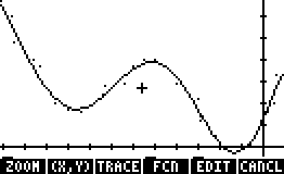 » Activa el modo FUNCTION en la calculadora, representaciones gráficas del tipo función, luego DRAW dibuja la función cuadrática almacenada en EQ. Finalmente se activa el modo gráfico PICTURE. |